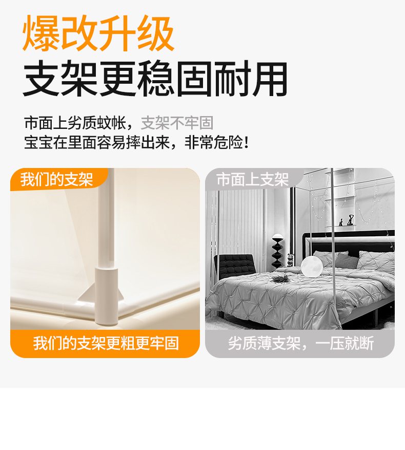 - - 2023新款免安装七股钢丝折叠加高印花折叠蚊帐